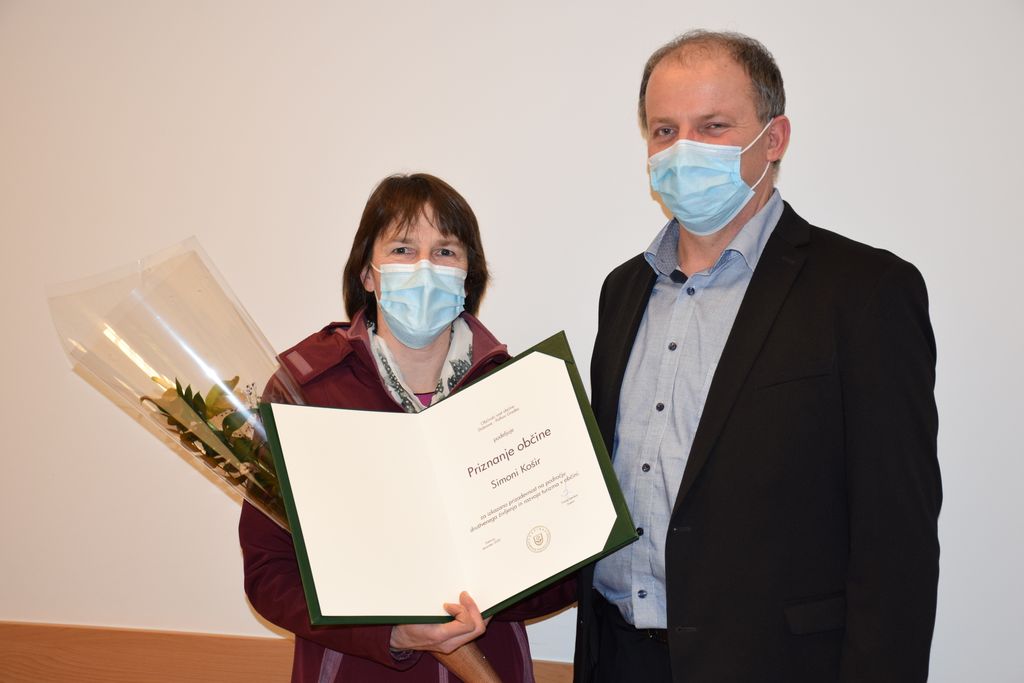 Simona Košir iz Črnega Vrha je ena izmed prejemnikov občinskih priznanj za leto 2020. Ostalim nagrajencem so bila priznanja podeljena na slavnostni seji občinskega sveta, ki je potekala 23. decembra 2020. Simona Košir se takratne seje ni mogla udeležiti, zato jo je župan Franc Setnikar povabil v prostore Občine in ji v sredo, 3. februarja 2021, osebno predal Priznanje občine za izkazano prizadevnost na področju društvenega življenja in razvoja turizma v občini.