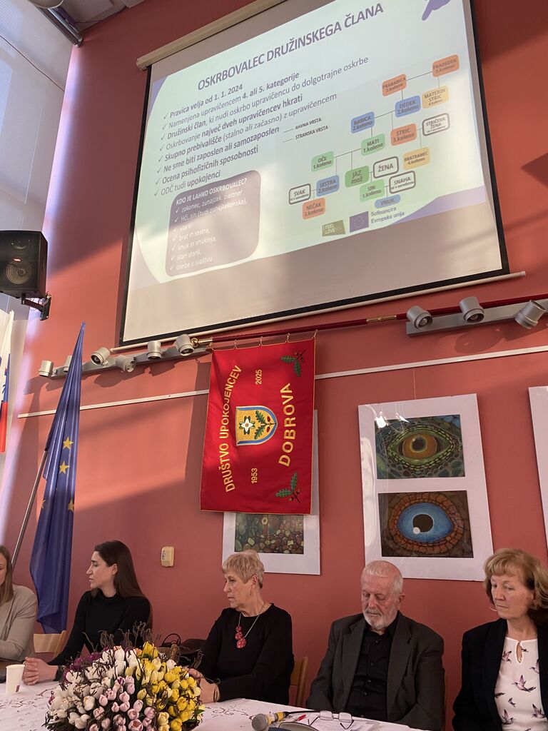 V nadaljevanju sta nam predstavnici Ministrstva za solidarno prihodnost predstavili sistem dolgotrajne oskrbe in sicer, kako se vključimo in katere pravice imamo. Polurna nazorna in zanimiva predstavitev je hitro minila in prejeli smo tudi pisno gradivo.
