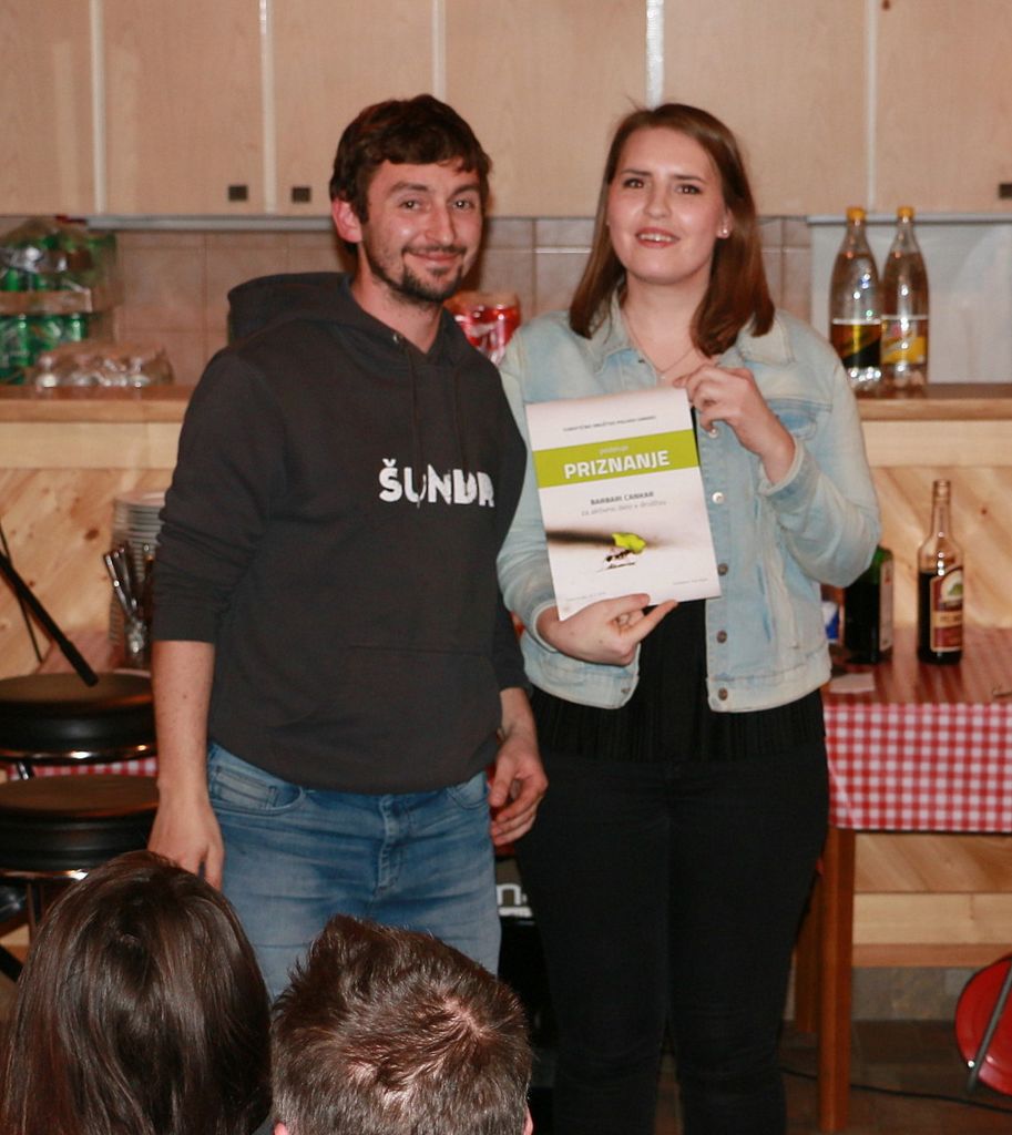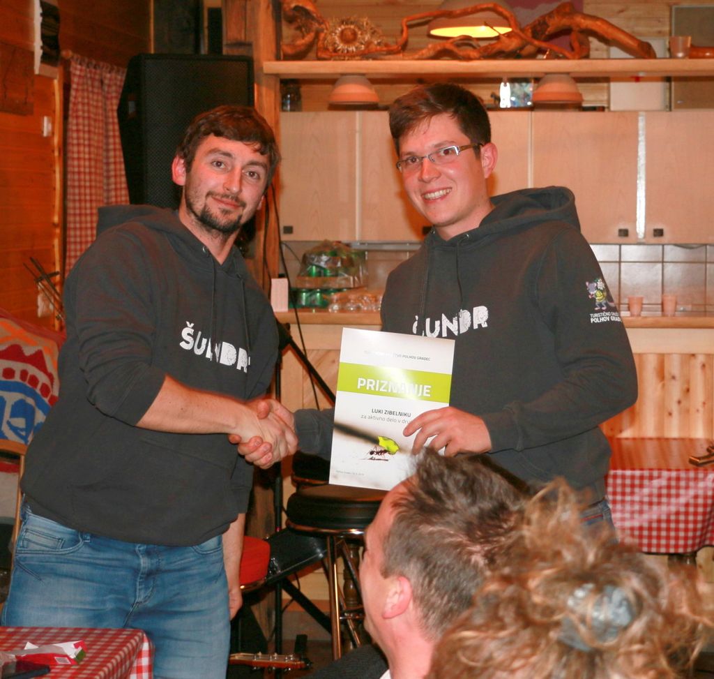 Priznanja za prizadevnost so dobili Luka in MihaZibelnik, Barbara Cankar in Žiga Vintar, grafiko polhka kot glavno nagrado pa je prejel, poleg poljuba brhke "hostese" Alje seveda, Miha Nartnik.