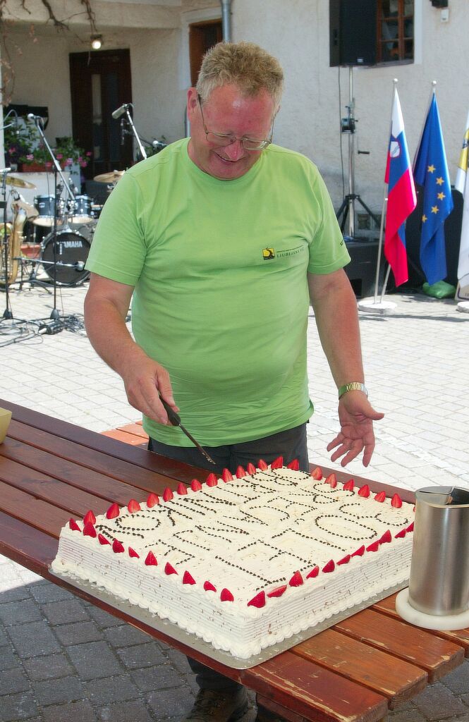 jubilejne torte, nato pa se je druženje nadaljevalo ob glasbi ansambla Škof, ki