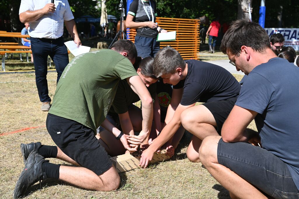 pomerili v hitrostnem puljenju žebljev. V tretji igri so skupine najprej morale
