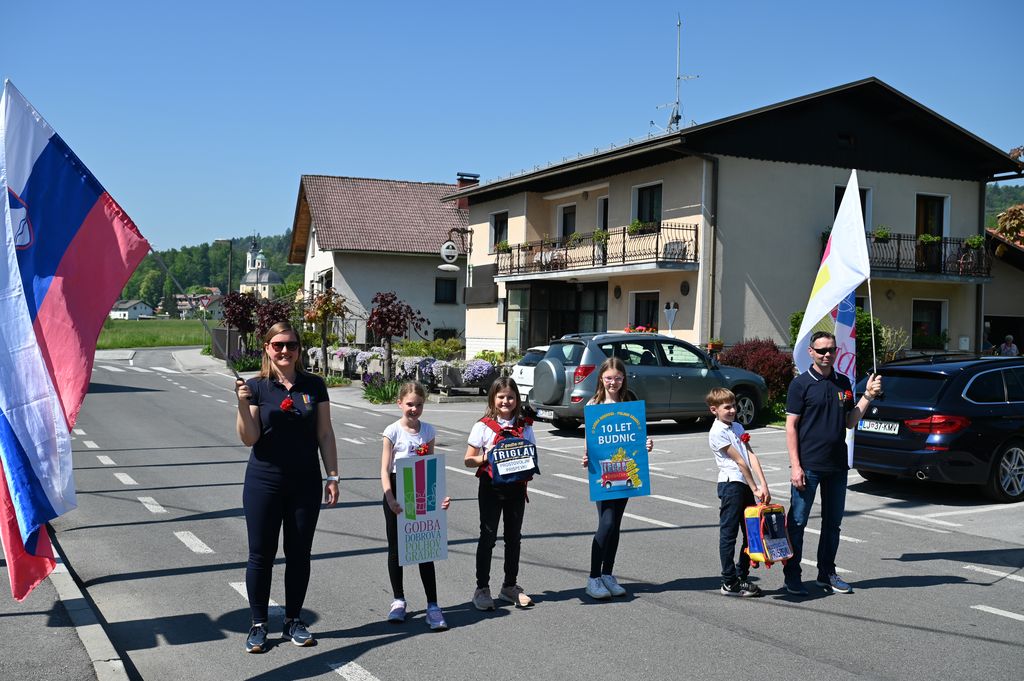 In odšli smo na pot. Že ob 5.20.uri so nas v Brezju pričakali veseli domačini, ki so nam ob našem zgodnjem prihodu veselo mahali in ploskali. Vse od Brezja do Vrzdenca nas je letos spremljala tudi STA in posnela vsako naše bujenje. Brezje je res nekaj posebnega. Prva jutranja postaja, kjer nas zadnja leta pričakajo s posebno popotnico. Na naše uniforme si godbeniki in mažorete nadenemo nageljčke s trakom slovenske trobojnice in letos še s številko 10, ki prikazuje jubilejno, 10. Prvomajsko budnico. Hvala vam dragi Brezn'čani za tako lep sprejem, čudovite sendviče in seveda vsakoletne nageljčke. Naprej smo se odpravili v Horjul, kjer so se nam pridružile Horjulske mažoretke. Horjulska cesta je bila polna kot še nikoli – velika skupina godbenikov in velika skupina mažoret. Poleg starejših mažoret, se je na Budnici skozi sosednjo občino pridružil tudi podmladek horjulskih mažoret.