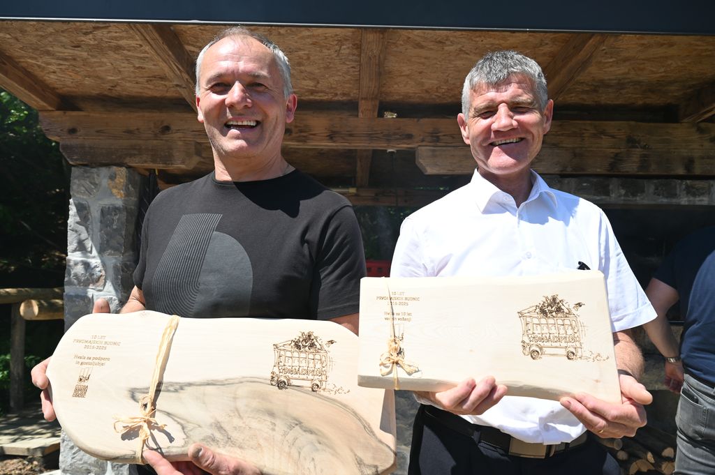 Na Komaniji smo našemu mecenu Janetu in našemu šoferju Vinkotu, obema za 10 let zvestega sodelovanja in pomoči, podarili zahvalo, ki ju bo še dolgo spominjala na naše lepe skupno preživete dni in spodbujala k temu, da se vidimo tudi prihodnje leto.