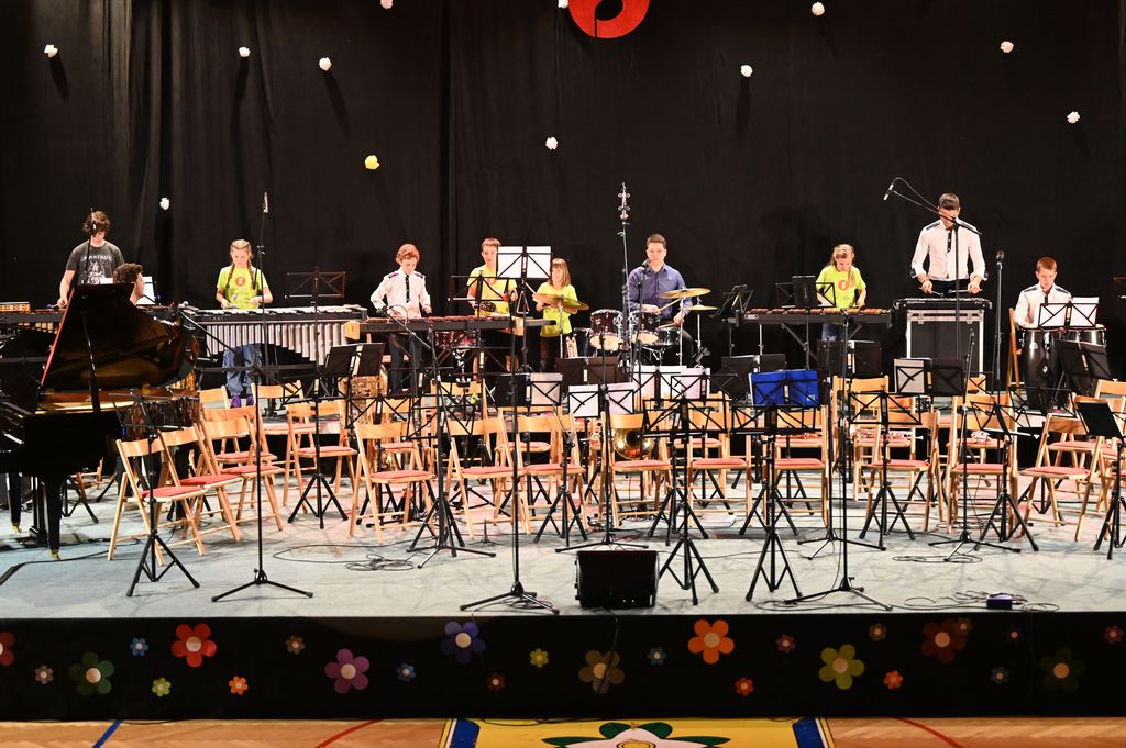 učenci Glasbene šole, ki se učijo tolkal. Pod mentorstvom Tilna Zakrajška so
