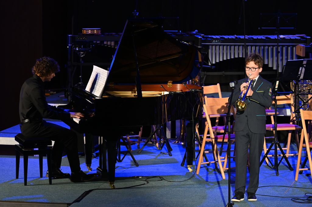 učitelji glasbene šole – Miloš Rebula na klavirju, Simon Brand na bas kitari