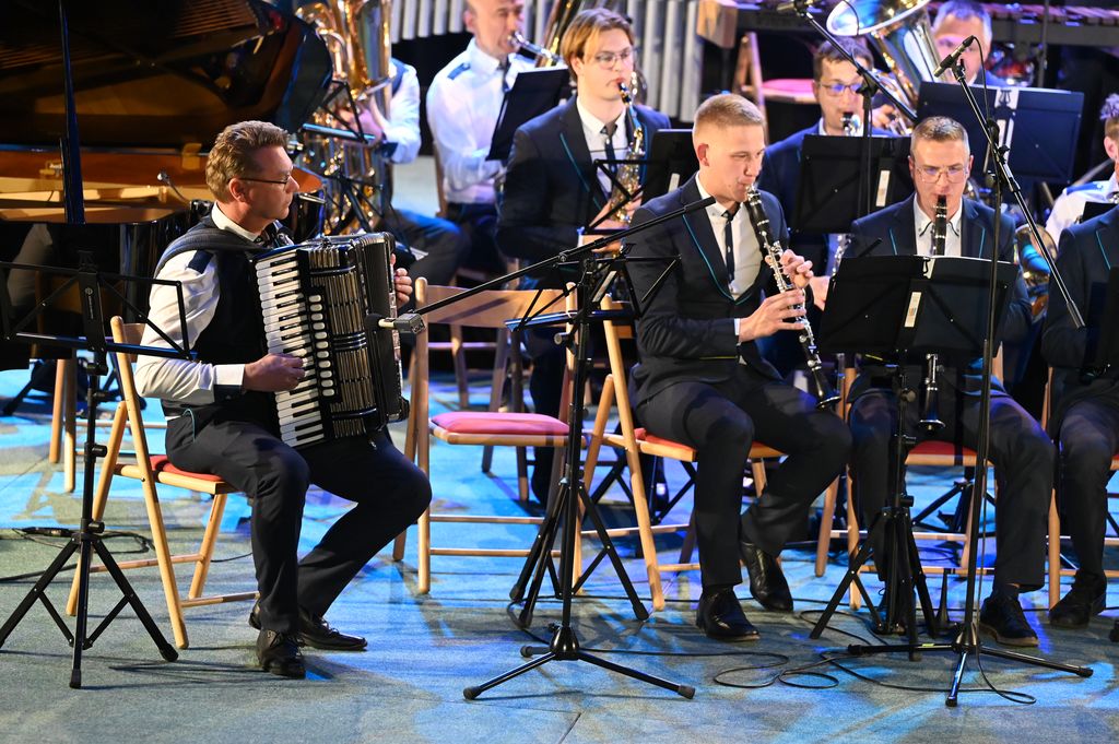 Klarinettenmuckl. Orkester pihal sta spremljala še godbenika Aleš Škof na bas