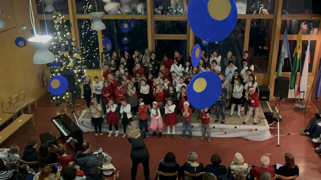 skupni nastop našega pevskega zbora in zbora OŠ Polhov Gradec, s katerim že