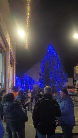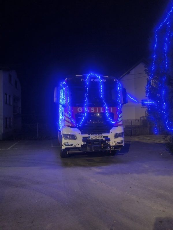 smreke je v prazničnih lučkah zažarelo tudi gasilsko vozilo, kar je dodalo