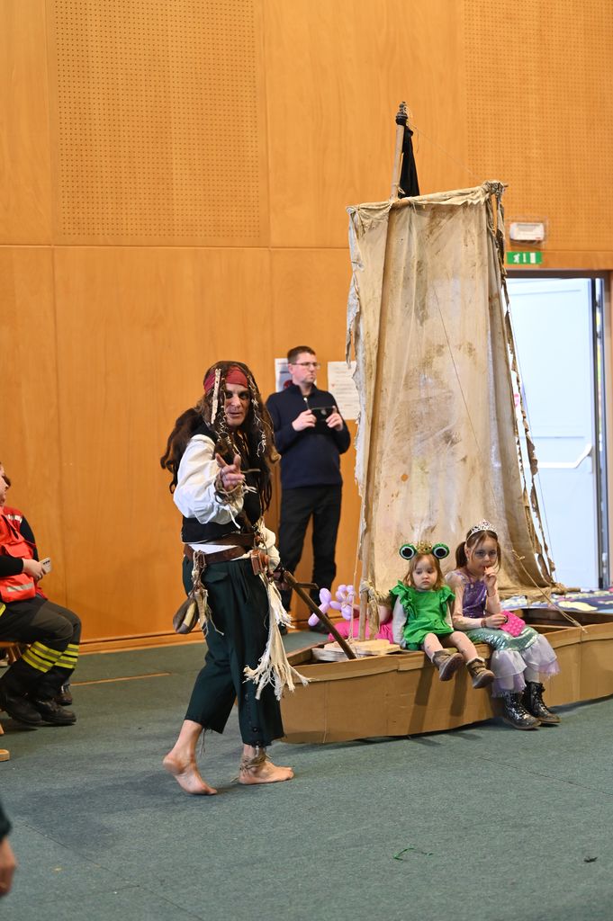 Skozi vrata se je sredi dneva pripeljal pravi Jack Sparrow iz filma Pirati s Karibov. Se še spomnite Noči godbe 2022 in filmske glasbe? Nazadnje je bil na naših koncih viden tam, na koncertu. Očitno pa je slišal tudi za pustovanje in se tja pripeljal kar s svojo ladjo. Na izgled resda strašen, vendar dobrega srca, je kapitan otroke s svojo ladjo celoten večer z veseljem vozil po dvorani.