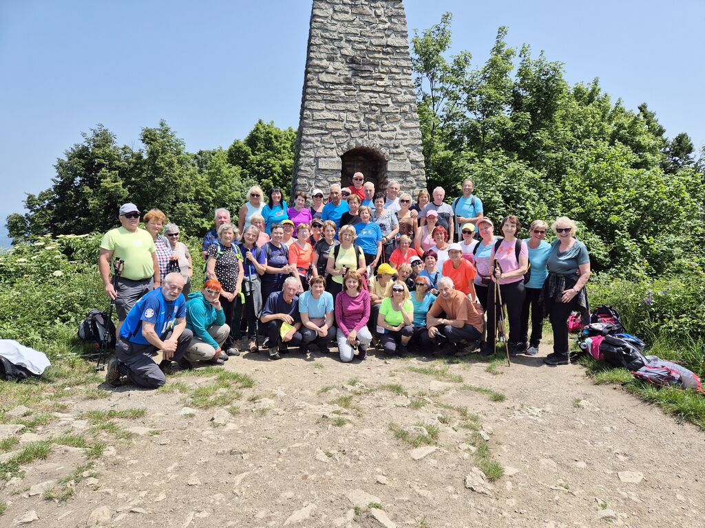 naredili pri Rudijevem domu na 589 m. Po polurnem počitku smo se po nezahtevni poti podali na vrh gore.