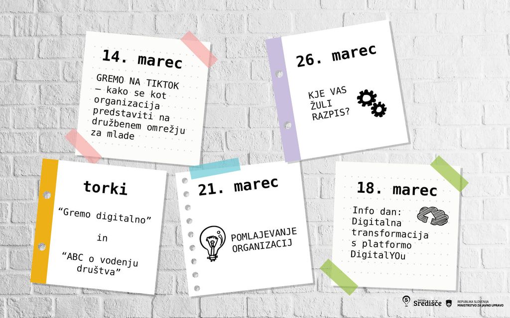 V prihajajočih tednih vabimo člane društev in drugih NVO na več praktičnih delavnice, napovedujemo pa tudi ponovni pričetek spletnih posvetovalnic, kjer se bomo pogovarjali o vaših izzivih in skupaj iskali rešitve.