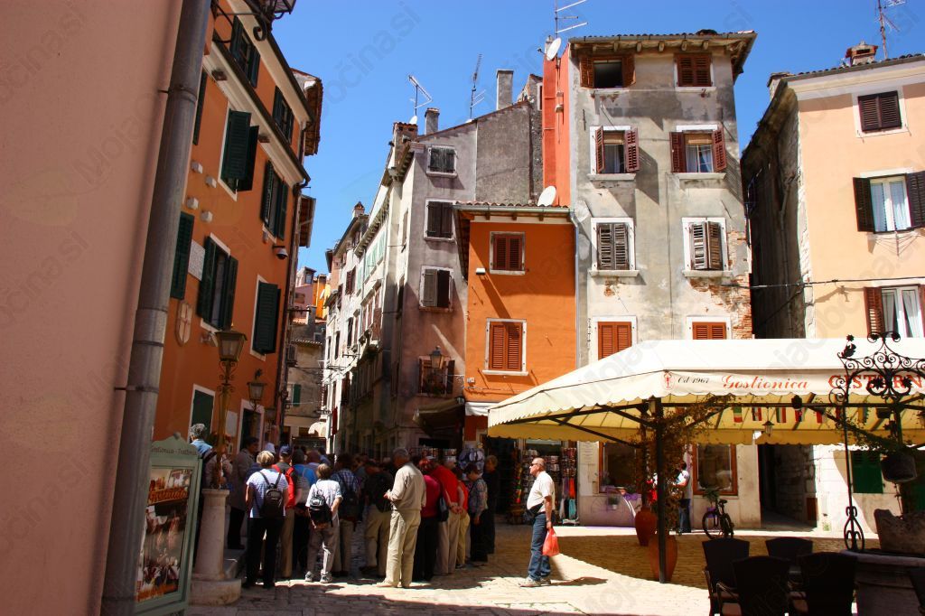 Izlet smo nadaljevali po dolini reke Mirne proti Rovinju. Rovinj je turistično mesto, dostopno po morju in kopnem. Med drugim smo si ogledali živilsko tržnico, ki je ena najlepših v Istri. Pri znanem trgovcu g. Armandu smo kupili domači sir. Nato smo se sprehodili do cerkve sv. Evfemije. Po zgodovinski legendi naj bi 13. julija leta 800 zgodaj zjutraj do rovinjske obale čudežno naplavilo marmornati sarkofag s telesom sv. Evfemije. Od takrat je Rovinj nerazdružljivo povezan s svetnico; njen relikt hranijo za glavnim cerkvenim oltarjem in si ga je mogoče ogledati. Cerkev krasi visok zvonik z angelom na vrhu, ki straži visoko nad hišami in borovci, le galebi in oblaki se ga dotikajo. Po ozkih ulicah, s sprehodom med številnimi trgovinami smo se vrnili na glavni trg, kjer smo imeli nekaj prostega časa.