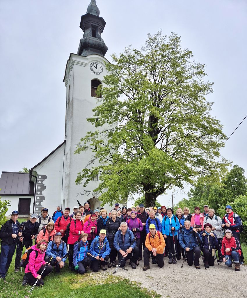 V torek, 6. 5. 2025, smo se pohodniki DU Dobrova odpravili v deževnem vremenu na pohod na Vinji vrh v bližini Šmarjeških Toplic. Najprej smo se ustavili v vasi Bela Cerkev in si ogledali tamkajšnjo cerkev t. i. belo cerkev. Župnik Jože Nemanič nam je povedal nekaj zanimivosti o tej lepi cerkvi. Nato smo se odpravili po dokaj strmi, razgledni poti med vinogradi na Mali Vinji vrh, kjer je na viš. 360 m cerkev sv. Janeza Krstnika. Tu nas je ponovno pričakal župnik Jože Nemanič in nam povedal nekaj zanimivosti iz teh krajev. Ob slovesu so se mu naši pevci zahvalili z ubranim petjem. Ob nekoliko okrnjenem razgledu smo si privoščili malico in nato smo odšli po razgledni panoramski cesti še na Veliki Vinji vrh s cerkvijo sv. Jožefa. Po krajšem počitku smo se spustili po gozdnih poteh. Celotna pot je t. i. arheološka pot, ki je dolga 8 km, s številnimi informativnimi tablami, ki pričajo, da so tukaj živeli ljudje že pred nekaj tisočletji. Po končanem pohodu smo se odpeljali še mimo Šmarjete do Klevevža. To je lepa naravna znamenitost – izvir tople vode z bazenčkom ima 25 stopinj Celzija. Voda v bazenu je zelo čista in nekatere je celo premamila za kopanje v njej. Sama soteska je znana po številnih slapovih, brzicah in tolmunih. V soteski sta tudi dve kraški jami z netopirji, v eni je celo topla voda. Pred bazenom je lepo obnovljen grajski mlin, ki pa ni za ogled. Na griču so razvaline gradu Klevevž iz 13. stol. Na koncu smo se odpeljali do Družinske vasi na kosilo v gostišče Domen. Kljub oblačnemu vremenu smo se imeli lepo.