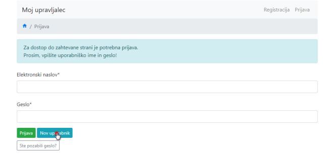 Spletna aplikacija Moj upravljalec je namenjena uporabnikom komunalnih storitev. Občanom ponuja vpogled v podatke o odjemnih mestih, števcih, prejetih računih (vodarina in grobnina) in plačilih ter omogoča sporočanje stanja števca za vodo upravljalcu komunalnih storitev.