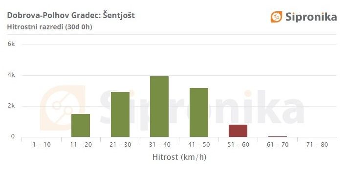 Pregled podatkov, ki jih zbira prikazovalnik hitrosti v Šentjoštu, natančneje na lokalni cesti LC 067040 Pil–Šentjošt–Smrečje, kaže, da vozniki na tem delu v veliki meri upoštevajo omejitev hitrosti, ki znaša 50 km/h. Še več – povprečna hitrost vožnje je izrazito nižja od omejitve hitrosti.