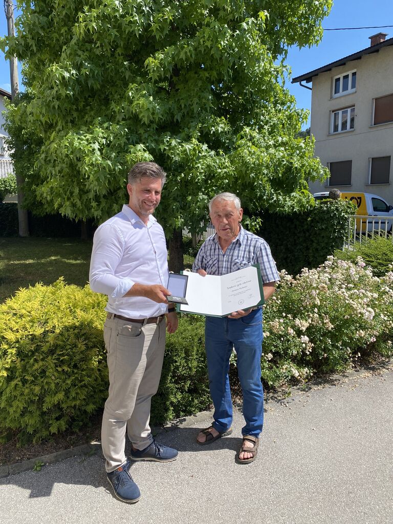 Priznanje mu je podelil 3. julija na sedežu Občine župan Jure Dolinar, v prisotnosti predstavnikov DU Dobrova in soproge Nade.
