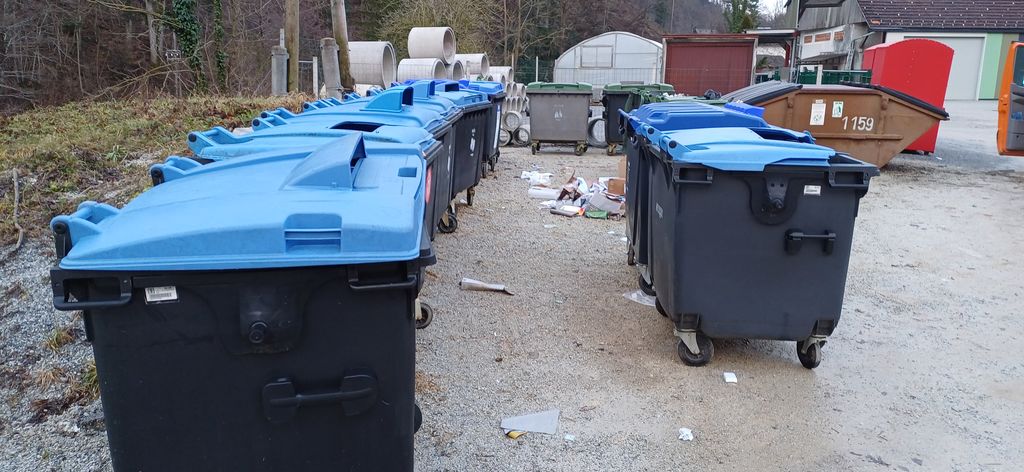 papir in steklo. Zabojniki s papirjem se praznijo vsake tri tedne,