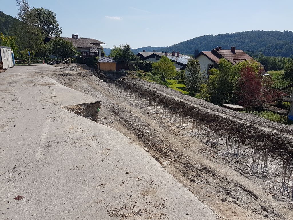 Dela so se pričela junija, do avgusta pa je izvajalec že namestil armiranobetonske pilote s premerom 0,8 metra, ki zagotavljajo stabilnost brežine. Strokovnjaki redno spremljajo potek projekta, izvedbo pilotov pa so potrdili kot ustrezno. Podjetje SGP Zidgrad Idrija d.d. bo nadaljevalo z opažanjem in izdelavo vezne armiranobetonske grede dimenzij 1,1 x 1,1 metra, ki bo med seboj povezovala pilote. Če bodo vremenske razmere ugodne za gradnjo na tem zahtevnem terenu, bodo dela predvidoma zaključena do jeseni.