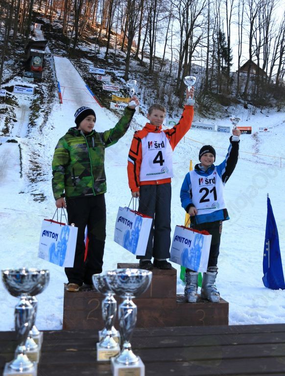 Najboljši trije skakalci v svoji kategoriji so prejeli pokale in bogate praktične nagrade, pokroviteljev prireditve je bilo namreč več kot 30, a nikakor ne gre pozabiti podjetja Schwarzmann, ki je omogočilo pokrit prireditveni prostor, pa tesarstva in krovstva Rus Marko ter Avtoklepa in ne nazadnje avtohiše Ford Bizilj; ta je bila pokroviteljica radijskega oglasa, ki je nekaj dni oglaševal »skoke do 300 decimetrov«! Kakor na zadnji tekmi leta 2013 je v najštevilčnejši kategoriji, nad 18 let, zmagal Miha Hebrle, doma iz Sela pri Bledu, za katerega sta vestno skrbela njegova glavna »pokrovitelja« v podobi ata in mame, v ciljno areno pa je priletel z značilno rumeno perjanico. Zmagovalno skupno dolžino obeh serij, 60,5 metra, je dosegel na smučkah za smuk Rossignol, saj so ravno prav trde in nimajo izrazitega stranskega loka (carving). Devetnajstletni Miha pa vsekakor ni čisti amater, kajti v mladosti je skoke treniral celo na skakalnici v Žerovnici na Gorenjskem. Pa še podatek za oboževalke, saj marsikateri ni uspelo dobiti njegovega avtograma zaradi strogih varnostnikov: Miha obiskuje Višjo šolo za podeželje in krajino v Naklem pri Kranju, najdete pa ga tudi na socialnih omrežjih, kjer bo zagotovo podelil slike iz Našega časopisa! Še enkrat hvala vsem pokroviteljem, ki so za prostor, tekmovalce in nas, obiskovalce skrbeli na pustno-tekmovalno-zabavno-Čuden način!