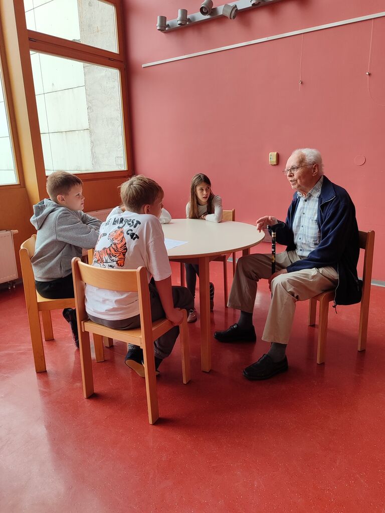 spominov na otroška leta naših gostov. Učence je močno zanimalo, kako je bilo v šoli