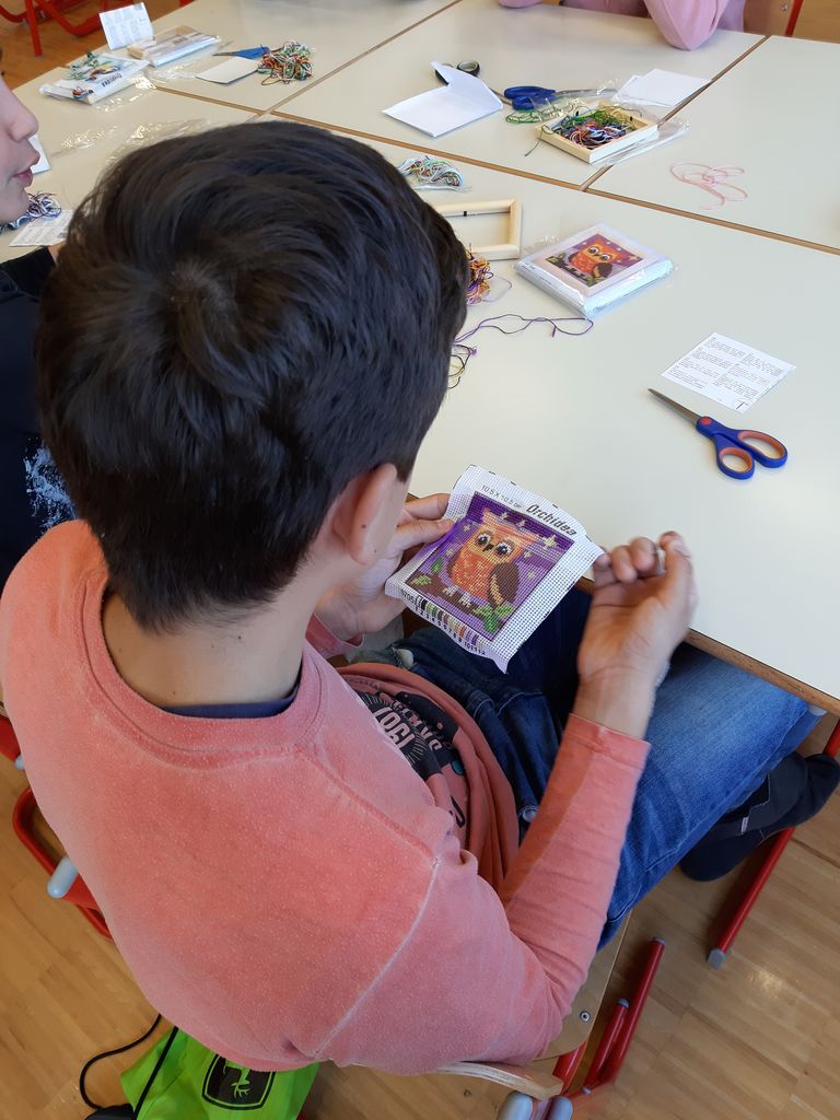 V gospodinjski učilnici so učenci pod vodstvom gospa Andreje Dolinar in Ivanke Kokelj pripravili ajdove in krompirjeve žgance, močnik ter vaniljeve rogljičke. Med učenci je posebej izstopal osmošolec Domen, ki je na lastno željo pripravil še čokoladno rolado, rolado z marmelado ter mini jabolčne pite. Vsi smo se strinjali, da so bile njegove sladice odlične. Sedem drugih otrok je skupaj z gospo Anico Tomšič, ki jo mnogi že poznamo, saj je vodila že kar nekaj delavnic v naši šoli, izdelovalo rože iz krep papirja. Izdelali so prečudovite nageljne in šopke podleska. Naša upokojena učiteljica gospa Marta Butina se je po nekaj letih zopet vrnila v učilnico matematike. Tokrat ni poučevala matematike, temveč je učence naučila izdelovati voščilnice v "pickpoint" tehniki. Nastale so čudovite čestitke z božičnimi motivi. Skupina osmošolcev se je skupaj z gospo Bredo Podobnikar lotila izdelovanja gobelinov. Nekaterim se je zdelo delo težko, saj prav nihče še ni izdeloval gobelina. Na koncu sicer nihče ni izdelal gobelina do konca, vendar so jih z veseljem odnesli domov in mogoče ga bo kakšen od njih dokončanega prinesel pokazat. Skupino učencev, ki je imela zagotovo najtežje delo, je vodila gospa Štefka Tehovnik. Učila jih je pletenja. Vsi smo se strinjali, da je "štrikati" težko. Pa vendar so bili prav vsi učenci vztrajni, pridno so sledili navodilom in počasi je vrstico za vrstico nastajala njihova prva pletenina. Zanimivo je bilo, da so poleg deklet pletli tudi fantje in delo jim je šlo odlično od rok.