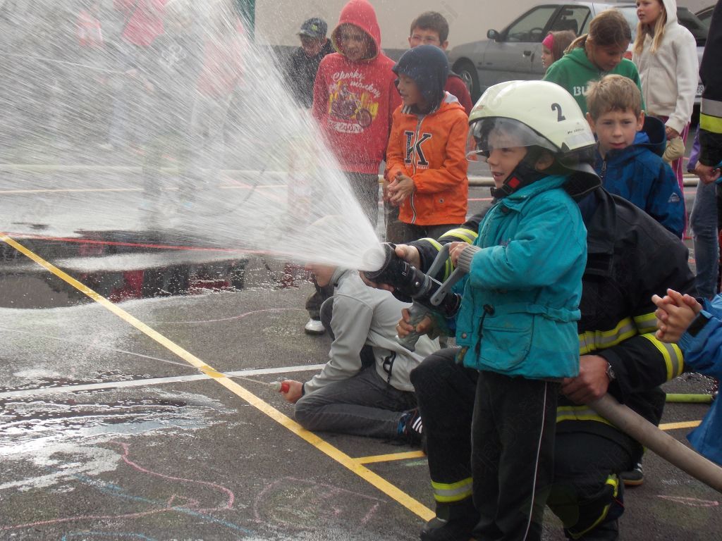 V četrtek, 3. oktobra, smo imeli dan varnosti. Na začetku so petošolci mlajšim zaigrali kratko igrico z naslovom Kako ukrotiti začetni požar, s katero so predstavili, kaj se zgodi, če se vname zavesa. Čez čas so prišli gasilci in izvedli smo evakuacijsko vajo. Nato so nam pokazali, kaj se zgodi ob požaru. Razkazali so nam tudi gasilske avtomobile. Bile so tudi gasilske igre, kjer smo učenci lahko poskusili, kako se brizga s cevjo, kako se sklepajo cevi, črpa voda ... Ko so gasilci odšli, smo narisali različne primere, ki lahko povzročijo požar.