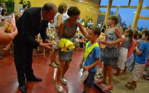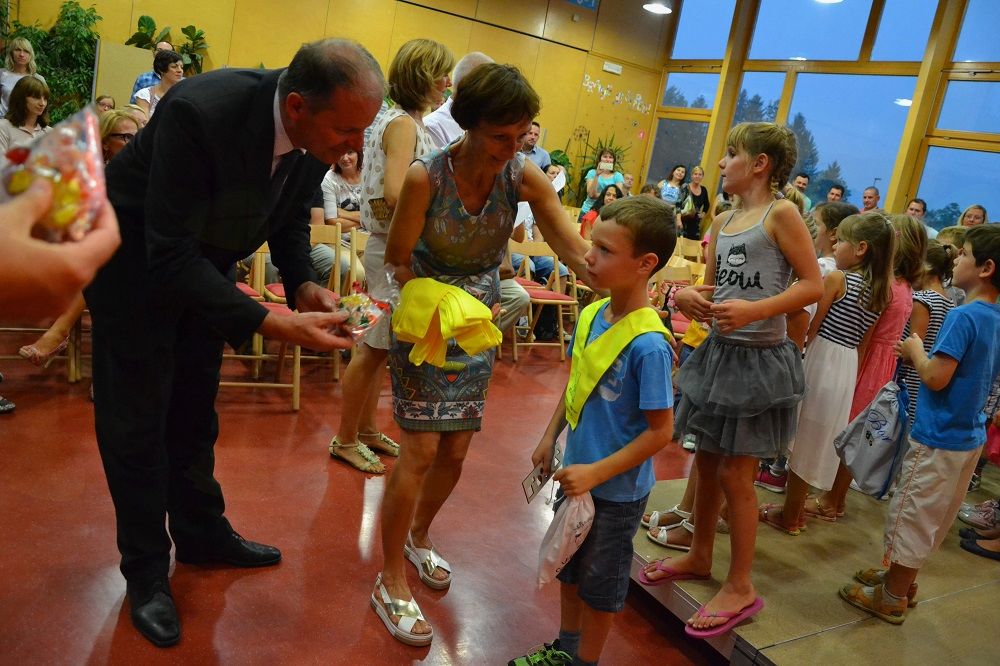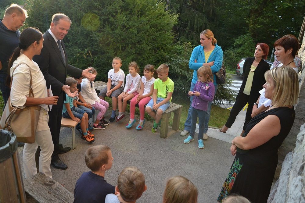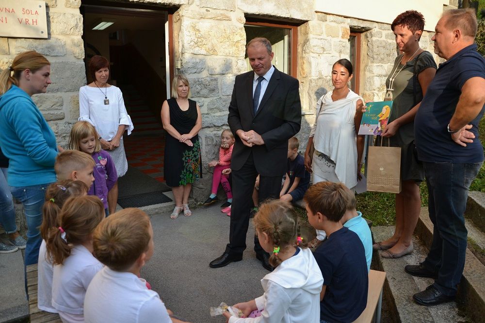 Župan Franc Setnikar je skupaj z ravnateljico Ilinko Kucler, predstavnico občine ter predsednikom Sveta za preventivo in vzgojo v cestnem prometu Občine Dobrova - Polhov Gradec sprva obiskal prvošolce v podružničnih osnovnih šolah v Črnem Vrhu in Šentjoštu, nato pa skupaj z ravnateljem Viljem Kovačičem pozdravil še najmlajše šolarje na Dobrovi in se pridružil izrečeni dobrodošlic ravnateljice v Polhovem Gradcu. Vsem je zaželel, naj radi hodijo v šolo, saj se bodo v njej veliko novega naučili, spoznali nove prijatelje ter srečali mnogo zanimivega. Izročil jim je knjigo Ti si moje srce ter jih posladkal s sladkim presenečenjem. Staršem, ki so na prvi šolski dan v šolo pospremili otroke, je položil na srce, naj otrokom pripravijo dan, ki ga ne bodo nikoli pozabili, učiteljem in šolskemu osebju pa zaželel uspešno delo in sodelovanje celo šolsko leto. Na dobro sodelovanje je opozorila tudi ravnateljica OŠ Polhov Gradec Ilinka Kucler, prvošolcem pa dejala, da zanje prihaja sprememba, saj šola prinaša nove odgovornosti in dolžnosti, ter poudarila, da se bodo vsi vključeni trudili, da se bodo učenci v šoli dobro počutili. Tej želji so se pridružili tudi vodje podružničnih šol in učiteljice v Črnem Vrhu in Šentjoštu.