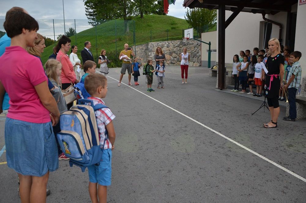 Ob prestopu v osnovno šolo na Dobrovi so najmlajše čakali najstarejši učenci. Prav tako jim je v imenu teh zares pozitivno in iskreno dobrodošlico zaželel devetošolec Matevž, ki je med drugim dejal: "Ful smo vas veseli, saj prave šole ni brez prvošolcev. S tem, ko ste prestopili prag naše šole, ste postali člani naše velike družine." Natrosil jim je nekaj vzgojnih glede pozdravljanja v šoli ter jim iz prve roke navrgel nekaj izkušenj. Tudi ravnatelj Viljem Kovačič je zbrane na prvi šolski dan prijazno pozdravil ter jim med drugim zagotovil, da so otrokom in staršem ravnatelj in učitelji vselej na razpolago. Po pozdravih je povsod sledil prijeten kulturni program, ki so ga ustvarili starejši učenci. Nekateri so učencem z rumenimi ruticami zapeli in zaigrali nekaj dnevu primernih pesmic, drugi pa so jim pripravili pravo gledališko predstavo ter na ta način predstavili nekaj iz obogatitvenih dejavnosti, ki se odvijajo na šolah. Temu je navadno sledila tudi razdelitev v razrede, spoznavanje razredničark in pravih sošolcev ter ogled matičnega prostora, v katerega bodo sedaj zahajali vsak dan, v njem pa preživeli kar precejšen del svojega časa. Po spoznavanju z novim okoljem je bil čas za malico in priboljšek, ki je bil ta dan slastnejši, nekaj posebnega, kot naj bi bil za prvošolce  celoten prvi šolski dan.