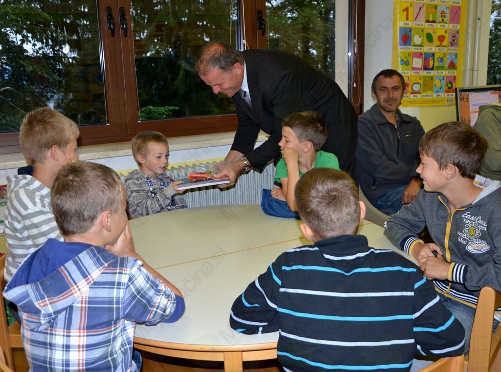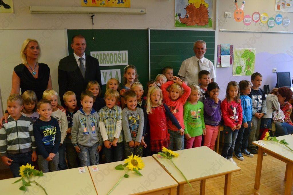 Najzgodnejši so bili tudi letos na podružnični osnovni šoli Črni Vrh, kjer so učenci in učiteljici tri nove sošolce, ki so jih tokrat v šolo pospremili starši, pričakali že ob pol osmi uri. Zgodaj zjutraj so se odprla tudi vrata podružnične osnovne šole Šentjošt, kamor je letos zakorakalo kar devet vedoželjnih prvošolcev. Prag učilnice so kar preskočili, nato pa si hitro našli svoja mesta, od koder so prvi dan poslušali nagovore učiteljice, ravnatelja in župana, v naslednjih dneh pa bodo tu že vsrkavali nove informacije, ki jim jih bodo posredovale učiteljice. Prav veličasten sprejem pa je doživelo 52 dobrovskih prvošolcev, ki so jih s sončnicami v roki ter nasmejanih obrazov že na vratih pozdravili devetošolci, učenci dramskega krožka pa so jim odigrali prizor iz fantazijske zgodbe Kosovirja na leteči žlici. V prijeten dan jih je nato popeljal ravnatelj Viljem Kovačič, ki jim je v športnem duhu zaželel, naj skozi šolske dni skupaj dobro krmarijo, saj so prav skupaj močnejši. Mnogo znanja, dobrega počutja ter prijateljskih vezi v šolskih prostorih pa jim je zaželel župan Franc Setnikar in jim ob tem, tako kot vsem preostalim prvošolčkom, poklonil knjigo Neže Maurer Ti si moje srce ter nekaj sladkorčkov, za sladek spomin na prvi šolski dan.