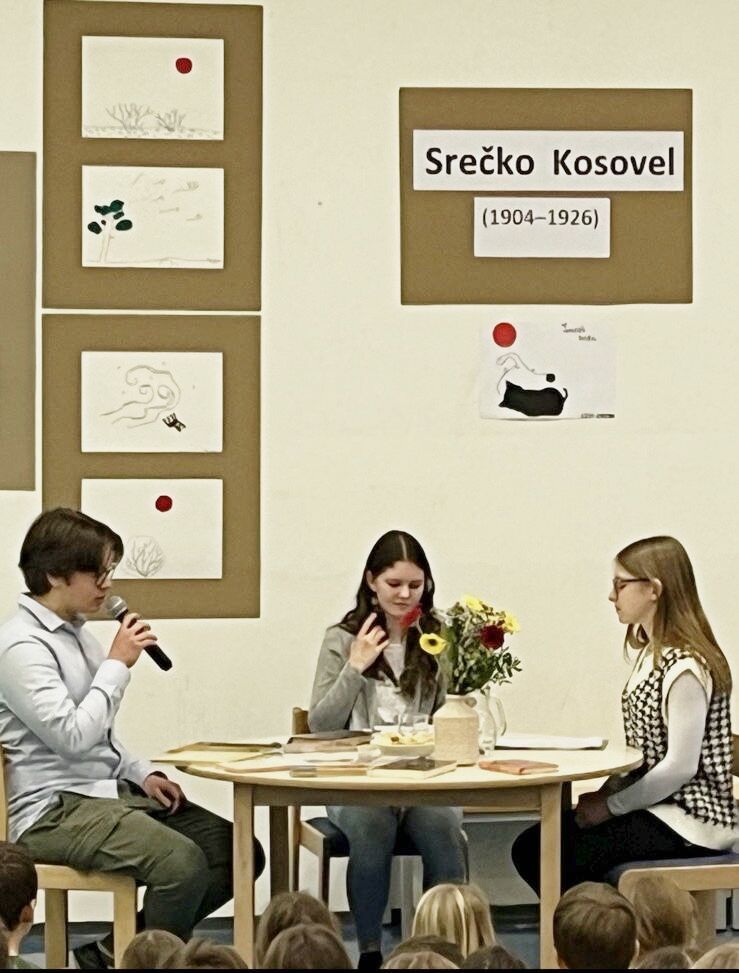 Ob letošnjem kulturnem prazniku smo učenci in učitelji pripravili tenkočutno prireditev, ki nas je popeljala v notranji svet mladega pesnika s Krasa. Že uvod je začrtal razpoloženje dneva: »Današnja prireditev nas bo popeljala v svet besed, misli, glasbe in sanj.« Rdeča nit prireditve je bil Srečko Kosovel, pesnik, ki je živel kratek čas, a je pustil globoko sled. Letos namreč mineva sto let od njegove smrti. Kosovel ni ostal zaprt med platnicami učbenikov, temveč je dihal skozi besede in mladostno ustvarjalnost. Voditelja sta ga občinstvu približala toplo in človeško, tudi z anekdoto iz njegovega otroštva, ko je boter ob njegovem rojstvu predlagal: »Dajmo mu slovensko ime, Srečko! Naj bo Srečko, da bo srečen!«