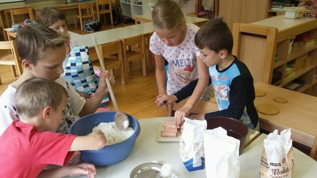 V tednu otroka, ki je letos potekal od 3. do 9. 10. 2016, v oddelku podaljšanega bivanja v Črnem Vrhu ni manjkalo dobre volje. V ponedeljek so se učenci preizkusili v peki palačink. Šlo jim je zelo dobro od rok, zato jih lahko mame brez problema vključite v pripravo kakšne sladke večerje. Torek je bil dan za kino v šoli. Sredo nam je popestril nagajivi gusar, ki je v Črnem Vrhu skril zaklad. Našli smo ga pred njim in zato je naš razred bogatejši za didaktično igro, pa še posladkali smo se malo. V četrtek smo se pogovarjali o igračah, ki so jih imeli nekoč, in se šli nekaj iger, na katere smo že skoraj pozabili. V petek smo spekli hrenovke v testu. Nekateri učenci so prvič videli, kako vzhaja kvas. Na koncu smo bili sklepčni, da smo si pripravili prav okusno malico, ki smo jo pojedli zunaj pri igrišču.