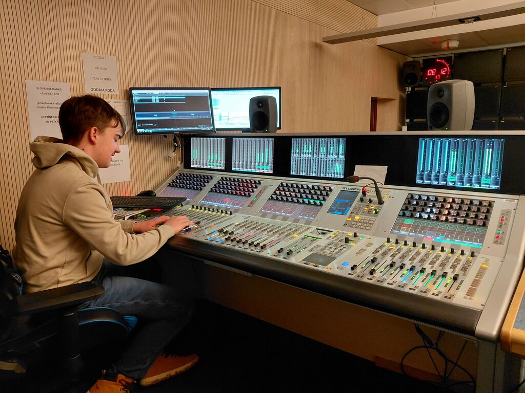 Na Osnovni šoli Dobrova imamo zelo zavzetega učenca, ki na šolskih prireditvah vedno poskrbi za šolsko ozvočenje. To je devetošolec Žiga Pečan, na katerega se vedno lahko zanesemo, tudi če to pomeni, da pride v šolo v popoldanskem času. S svojim znanjem in samoiniciativnostjo pomembno prispeva k uspešni izvedbi šolskih dogodkov. Njegov trud in zanimanje za tonsko tehniko sta mu prinesla posebno priložnost – med počitnicami je obiskal RTV Slovenija ter pobliže spoznal delo na televiziji. Skupaj z vodjo skupine za ton si je ogledal nastajanje oddaje Dobro jutro in se seznanil z delom v tonski režiji. Zanj je bila to izjemna izkušnja. Navdušila ga je predvsem vsa tehnika, ki jo je imel priložnost pobliže spoznati. Zanimivo se mu je zdelo tudi to, koliko usklajevanja in sodelovanja je potrebnega že pred snemanjem in med samo oddajo ter koliko različnih poklicev je vključenih v njeno izvedbo. Všeč pa mu je bilo tudi sproščeno vzdušje med zaposlenimi.