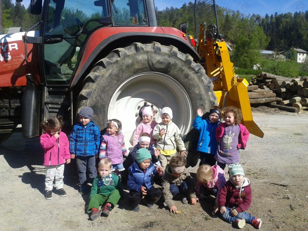 Naš vrtec je obdan s kmetijami, a smo se odločili, da znanja nimamo nikoli preveč, zato smo kar nekaj časa namenili zbiranju informacij o življenju in delu na kmetiji. Ogledovali smo si fotografije, knjige in slikanice, naučili pa smo se tudi pesmico z naslovom Na kmetiji je lepo in tako prek pesmi spoznali živali, ki živijo na kmetiji. Naši najmlajši mucki pa so z glasovi ponazorili, kako se vse te živali oglašajo. Odšli smo tudi na daljši sprehod do kmetije našega prijatelja Nejca, kjer so nas prijazno sprejeli in nam dovolili, da si živali in delovne stroje ogledamo od blizu. In za vso gostoljubnost in prijaznost se vsem še enkrat lepo zahvaljujemo.