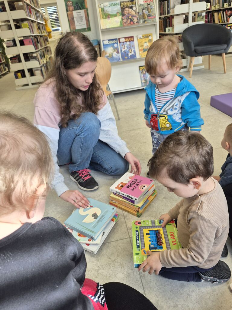 V mesecu marcu so vse skupine našega vrtca obiskale knjižnico na Dobrovi. Obiski so potekali v okviru projekta Ciciuhec, v katerem že vrsto let z veseljem sodelujemo. Namen projekta je, da pri otrocih že v zgodnjem obdobju spodbujamo zanimanje za knjige, branje in obiskovanje knjižnice ter jih na prijeten in igriv način popeljemo v čarobni svet knjig in pravljic. Pravljično urico smo obiskali tudi z našimi najmlajšimi otroki, s skupino Želvice. V knjižnici smo preživeli prijetno dopoldne. Z zanimanjem smo prisluhnili pravljici Ti (nisi) majhen, nato pa smo si ogledali nekaj knjigic za najmlajše in se veselo igrali z igračkami, ki so bile na voljo v knjižnici.