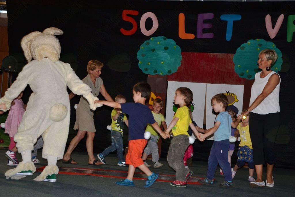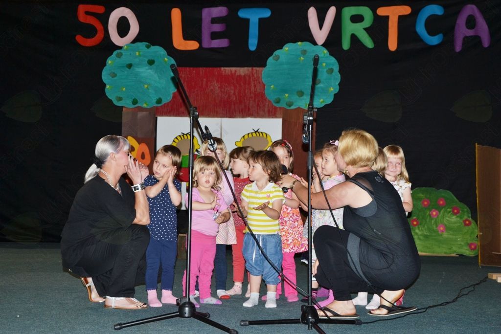 Potem je spregovoril župan Franc Setnikar in poudaril, da se morajo starši zavedati odgovornosti, ki jo nosijo: "Starši ste še vedno prvi, ki morate skrbeti za vzgojo svojih otrok, kljub temu da v današnjem tempu življenja vse pomembnejšo vlogo prevzemajo vzgojitelji in šolsko osebje." Vsem je čestital ob praznovanju okroglih obletnic in jim zaželel uspešnega dela še naprej. Po pozdravnih nagovorih je končno prišel čas za nastope, ki so jih tako gledalci kot nastopajoči najbolj pričakovali. Na prizorišču sta se pojavila Janko in Metka, ki sta tavala med kulisami in v gozdu iskala pravo pot. Na poti sta srečala različne živali, ki so jima pripravile pevske, plesne in dramske nastope. Zvrstile so se prav vse živali, ki so vključene v vrtec Dobrova – Račke, Pikapolonice, Zmajčki, Medvedki, Delfinčki, Želve, Ribice, Mucki, Konjički in Sovice. Prisrčni nastopi so poželi bučne aplavze in navdušenje gledalcev, ki so bili ponosni na svoje malčke ter še bolj prepričani, da se njihovi otroci v vrtcu dobro počutijo in veliko novega naučijo.