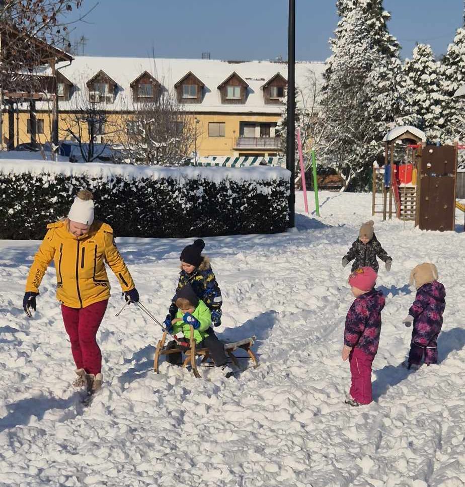 V teh zimskih dneh je bilo na igrišču v vrtcu na Dobrovi še posebej