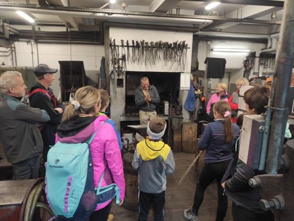 do kovačije. Po skupnem ogledu kovačije, so se peš napotili navzgor do slapov,