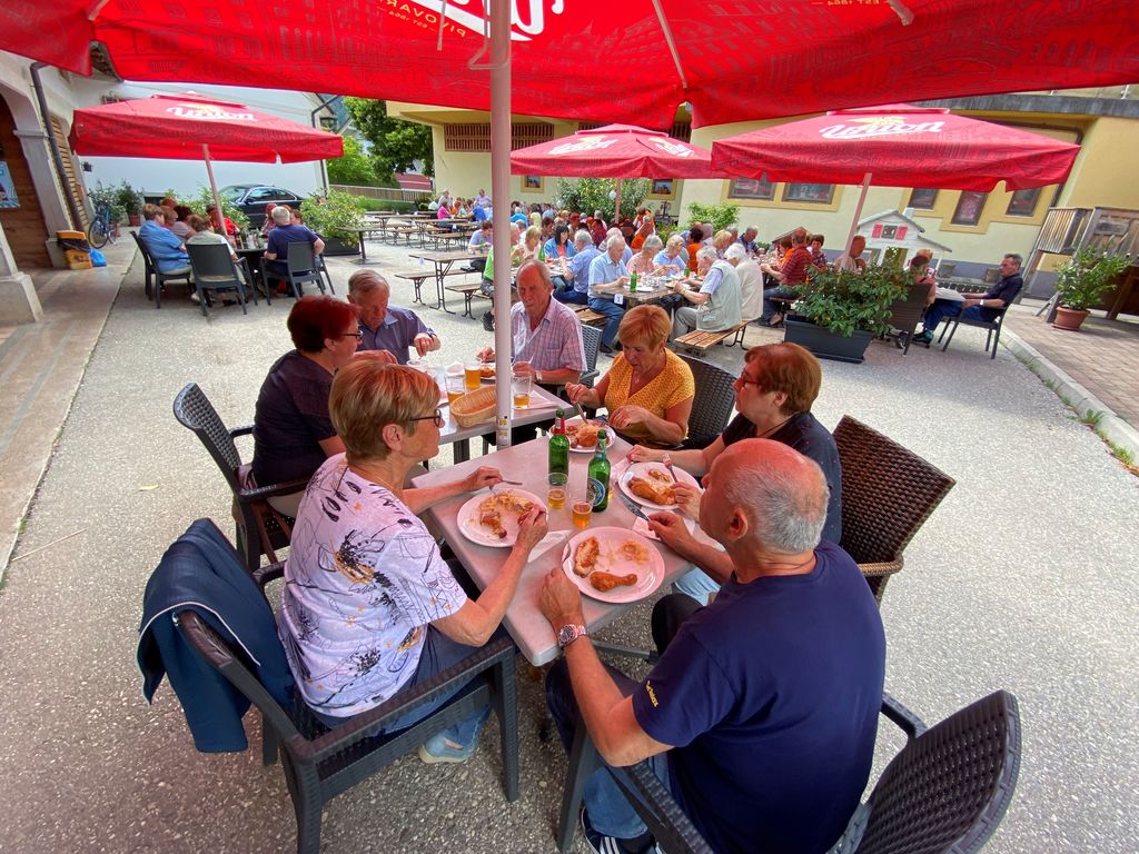 Letos smo 1. 6. 2022 že tretje leto zapored na prvo sredo v juniju organizirali društveno srečanje s piknikom na Šujici v prijaznem domačem gostišču  Pr' Prek. Srečanje je počastil z obiskom naš župan Franc Setnikar. Udeležba je bila letos največja, kar 150 članic in članov skupaj z gosti, kar kaže, kako smo pogrešali druženje. Za prijetno vzdušje se zahvaljujemo harmonikarjema  Rajku in Tonetu in vsem »mladim po srcu«, ki ste nas razveselili s svojim prihodom ter seveda ekipi in družini Jerneja Suhadolca za dobro kulinariko in hitro ter prijazno postrežbo!