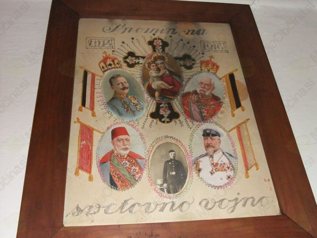 "Zelo zanimiv kolaž. Zgoraj levo je nemški cesar Viljem II., zgoraj desno je avstrijski cesar Franc Jožef, levo spodaj je turški sultan Mehmed V., desno spodaj pa bolgarski kralj oziroma car Ferdinand. Slika je stara torej okroglih sto let." Kdo ima zasluge, da se je ohranila? Nedvomno je k temu veliko pripomoglo spoštovanje do staršev, do njihovih življenjskih poti. Pa prav lepa hvala Bitenčevi družini za dovoljenje, da bo ta starožitnost dostopna tudi bralcem Našega časopisa.