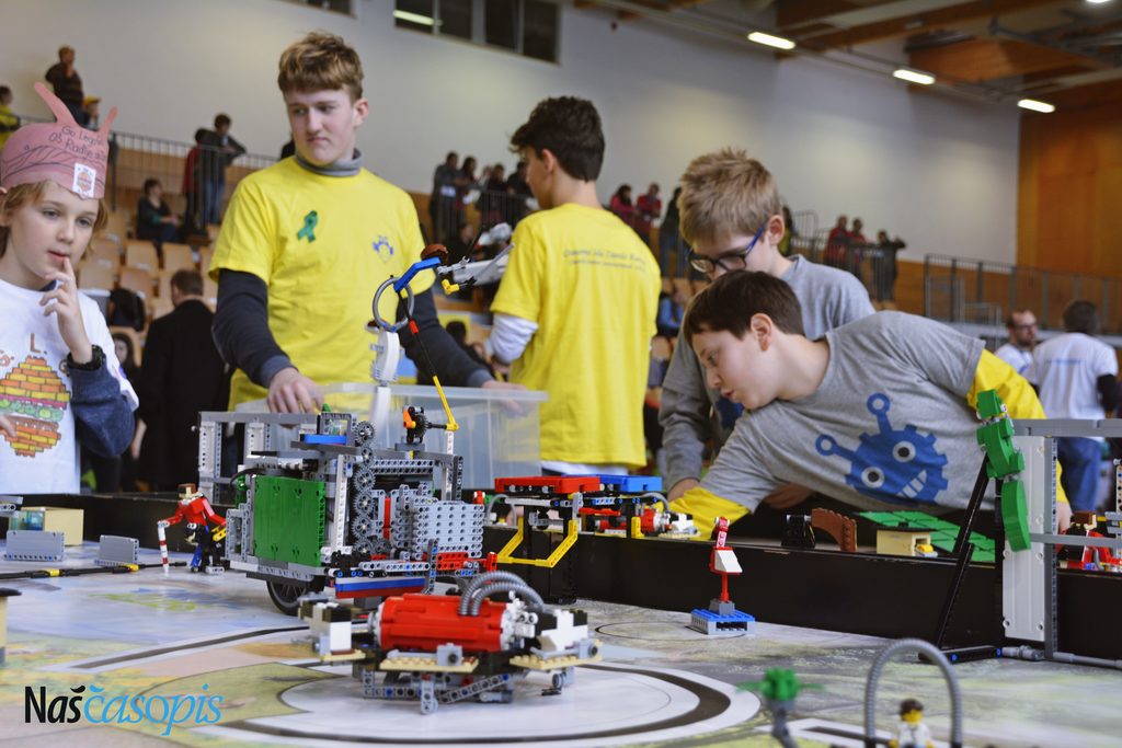 V dopoldanskem času, ko je prizorišče obiskala naša ekipa, je dvorana kar pokala po šivih od otroškega vrveža in številnih "firbcev". Glasno navijanje in komentator sta pozornost usmerjala na osrednje prizorišče – poligone, kjer so se merile ekipe z lego roboti. Mladi, stari od 10 do 16 let, so robote sestavili in sprogramirali sami, seveda na podlagi številnih poskusov in pred budnimi očesi odraslih mentorjev. Roboti so morali v določenem časovnem terminu opraviti čimveč nalog, povezanih z živalsko tematiko – to je bila namreč osrednja tema letošnje sezone.