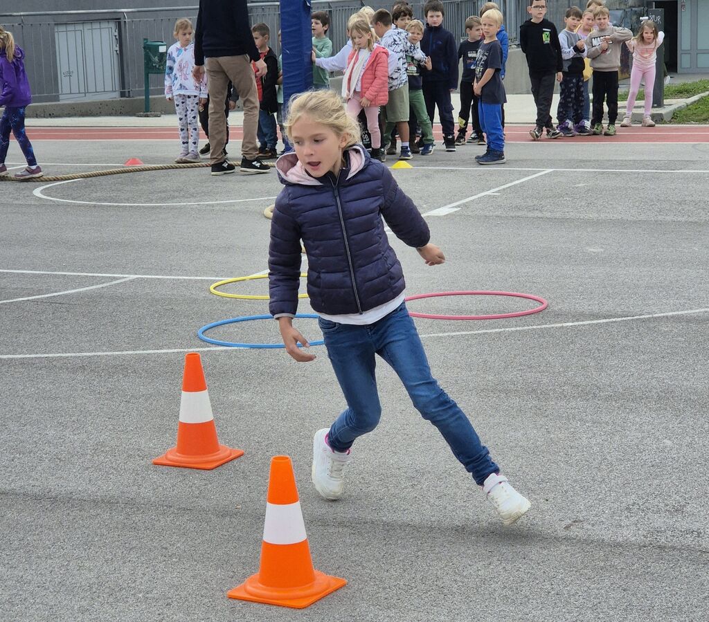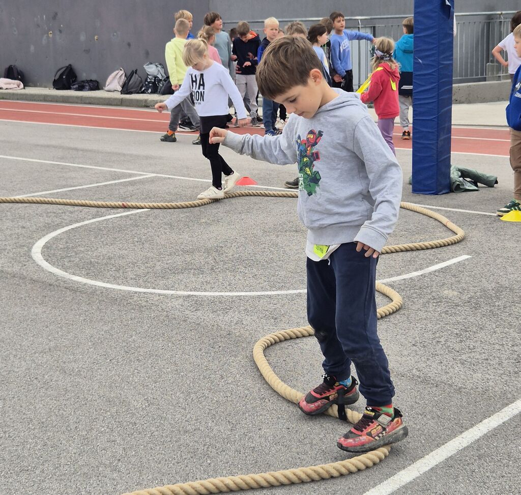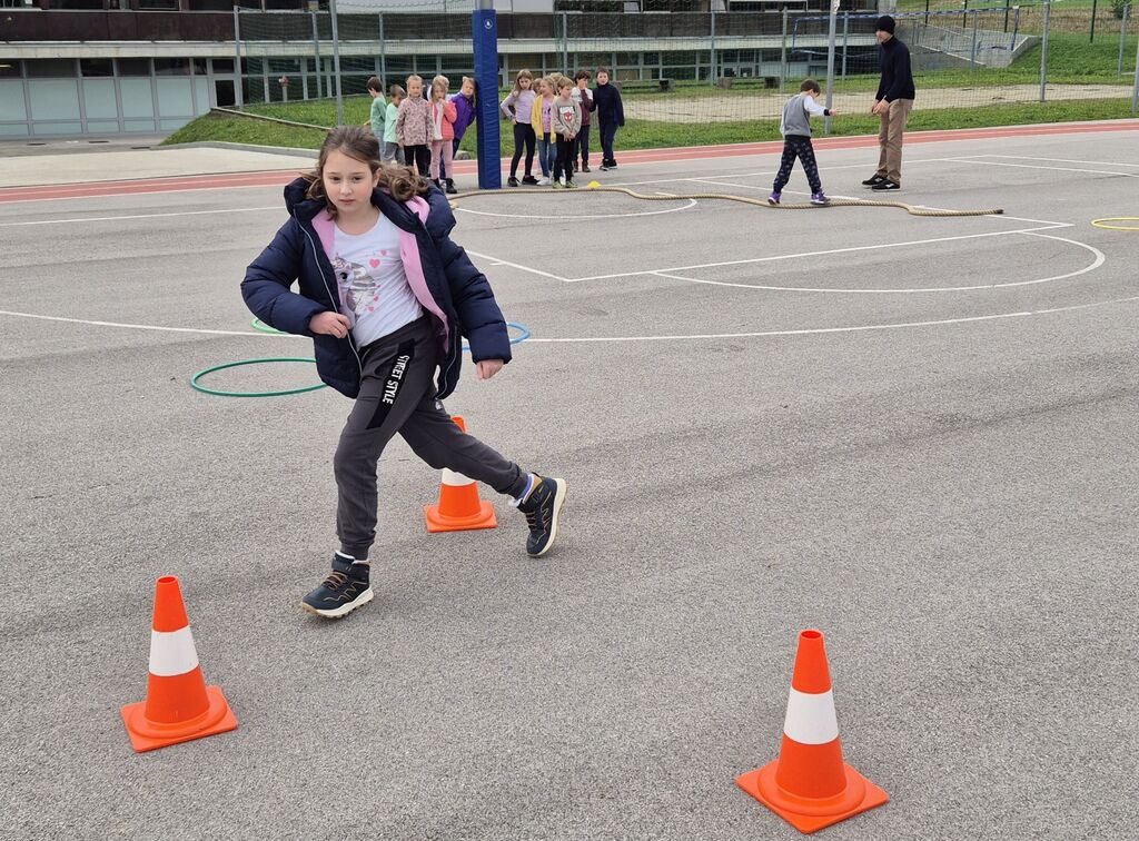V OPB3 so prijazne besede uporabljali na športnem poligonu. Pri telovadnih spretnostih so se jim pridružili tudi ostali učenci podaljšanega bivanja.