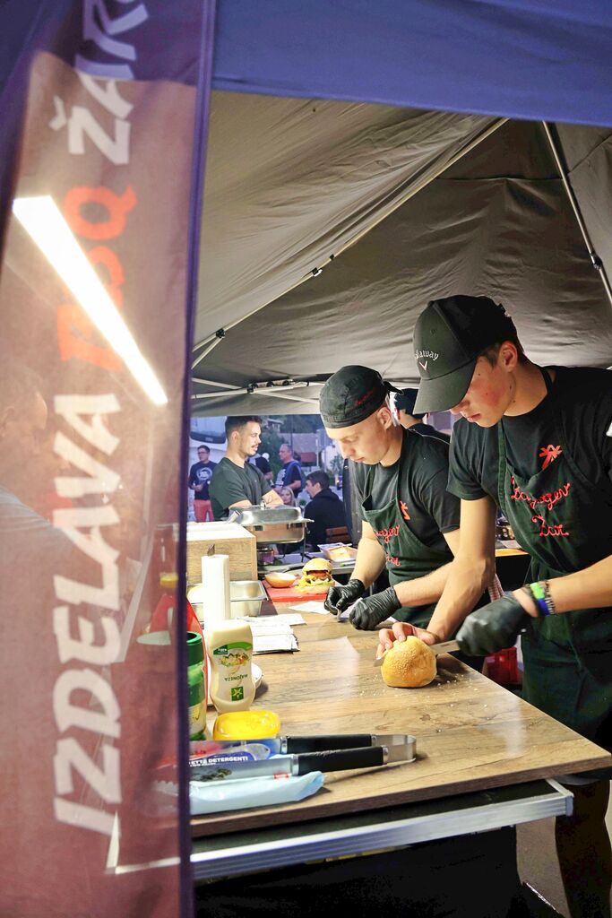 Ob glasbi in družbi so si obiskovalci privoščili vroče burgerje, ki so jih