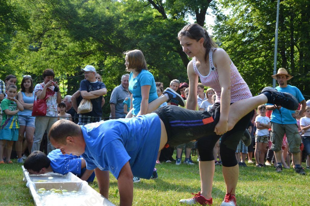 Tu je potekal drugi del uradnega programa; spregovorila sta predsednik TD Briše Tone Koprivec in župan Franc Setnikar, zbrane prijazno pozdravila ter jim zaželela veselo druženje. Program sta s svojim nastopom sooblikovali še Folklorna skupina Grof Blagaj in otroška Folklorna skupina Nagajivčki. Nato pa je povezovalec Ivan Hudnik vse zbrane povabil k ogledu kmečkih iger, ki so gledalce in navijače znova nasmejale, tekmovalce pa dodobra namučile. Štiri tekmovalne ekipe so se pomerile v skakanju parov v vrečah, pobiranju in lupljenju krompirja, molži, lovljenju krompirja ter prenašanju jabolk iz svinjskega korita v vedro, in to v drži "šajtrge". Zmagovalci so bili vsi, ki so v igrah sodelovali, saj so pokazali svojo urnost, iznajdljivost in utrjenost, najboljši pa so prejeli nagrade. V sklopu dogodka so si obiskovalci lahko ogledali tudi priložnostno razstavo v Severjevi hiši, ki je prikazovala stare posode in kuho v čisto pravi črni kuhinji, v polhograjski graščini pa so spoznali slikarska dela Marjana Malovrha. Kot se za Dan pod Lovrencem spodobi, je bila bogata tudi kulinarika – podeželske žene TD Briše so pripravile raznovrstna peciva, potice in kmečki kruh, skuhale okusno domače zelje s krompirjem, žgance, ričet in klobase ter spekle ocvirkovko.