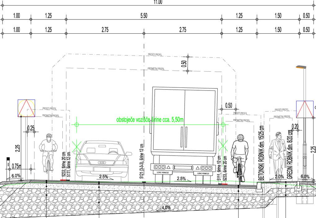 obstoječe ceste ter gradnjo površin za pešce in kolesarje. Projekt ureditev v 2. in 3. fazi zajema območje od ulice Vladimirja