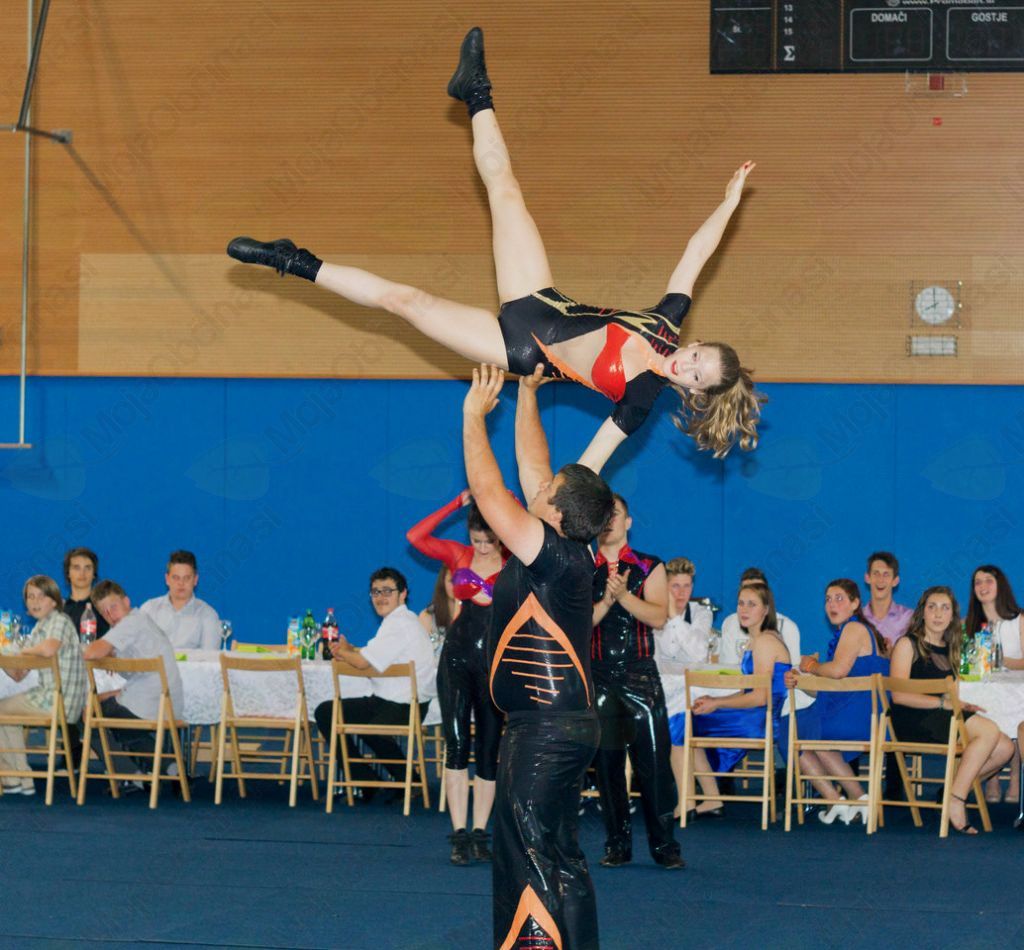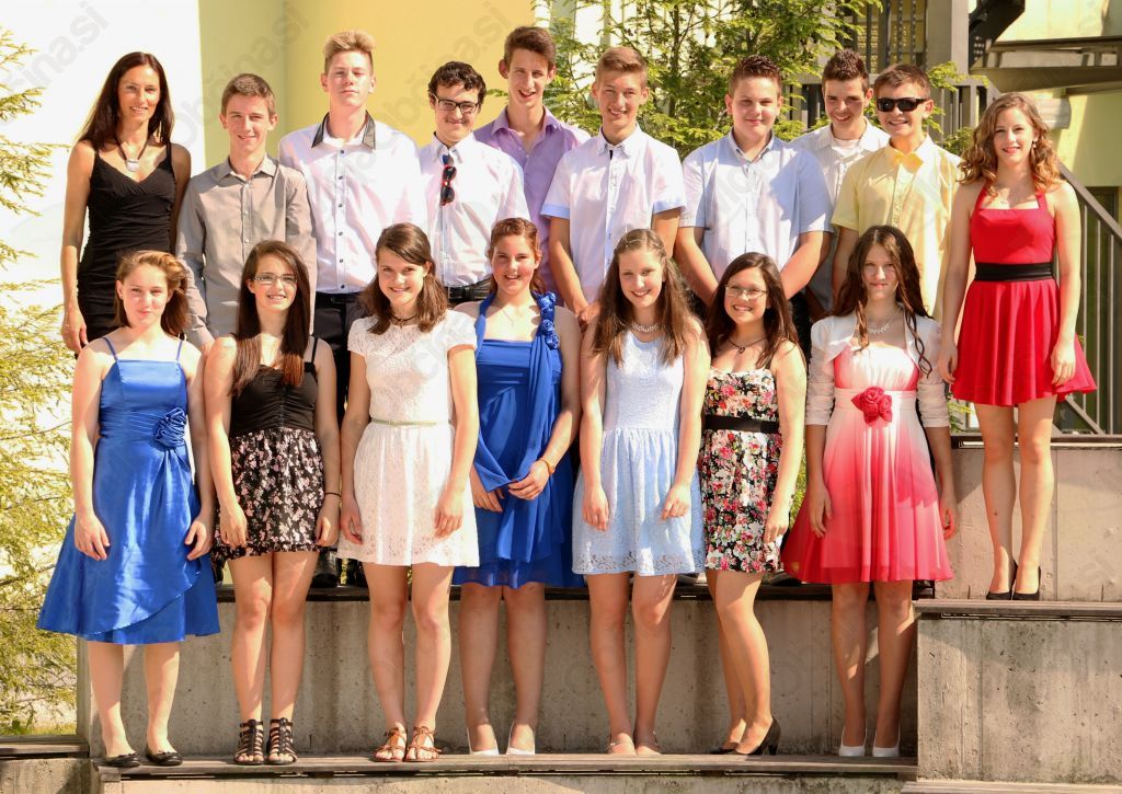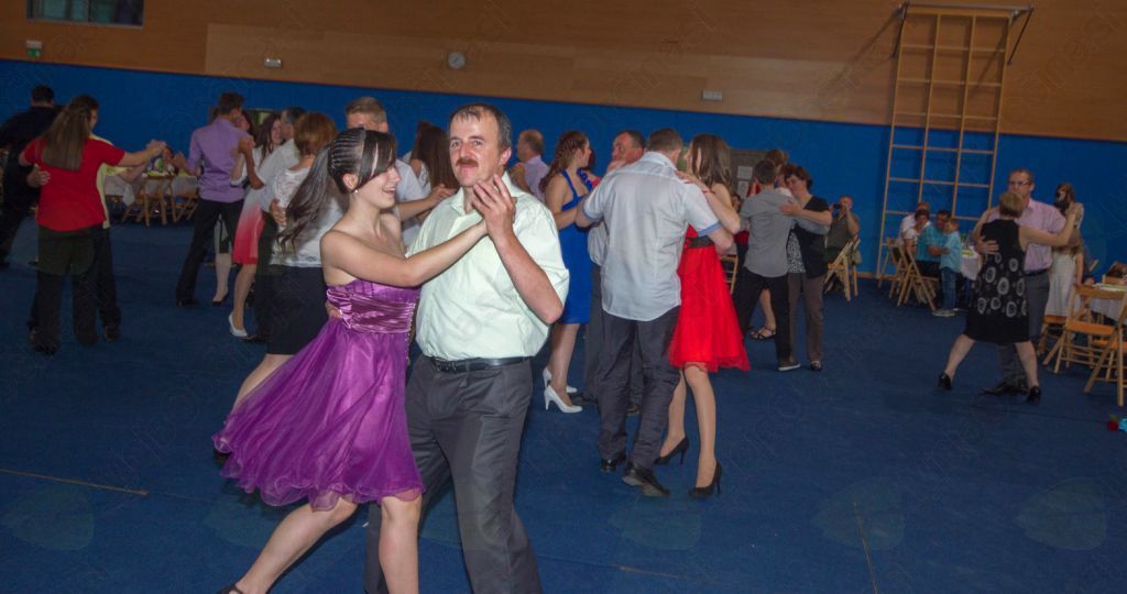 Angleški valček, tehnosving, čačača in celo tango so odprli dogajanje v avditoriju pred telovadnico vročega petkovega popoldneva 5. junija, potem pa so učenci, pravzaprav pravi gospodiči in gospodične z visokimi petami, usklajeno odkorakali v ohlajeno telovadnico. Telovadnica? Tudi ta se je odela v svečane modre preproge skladno z večernimi toaletami staršev in učencev.