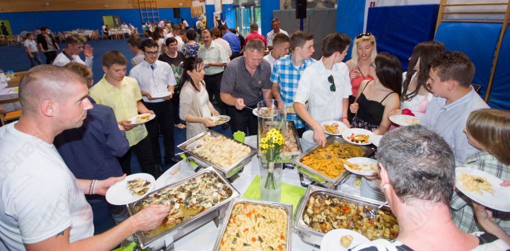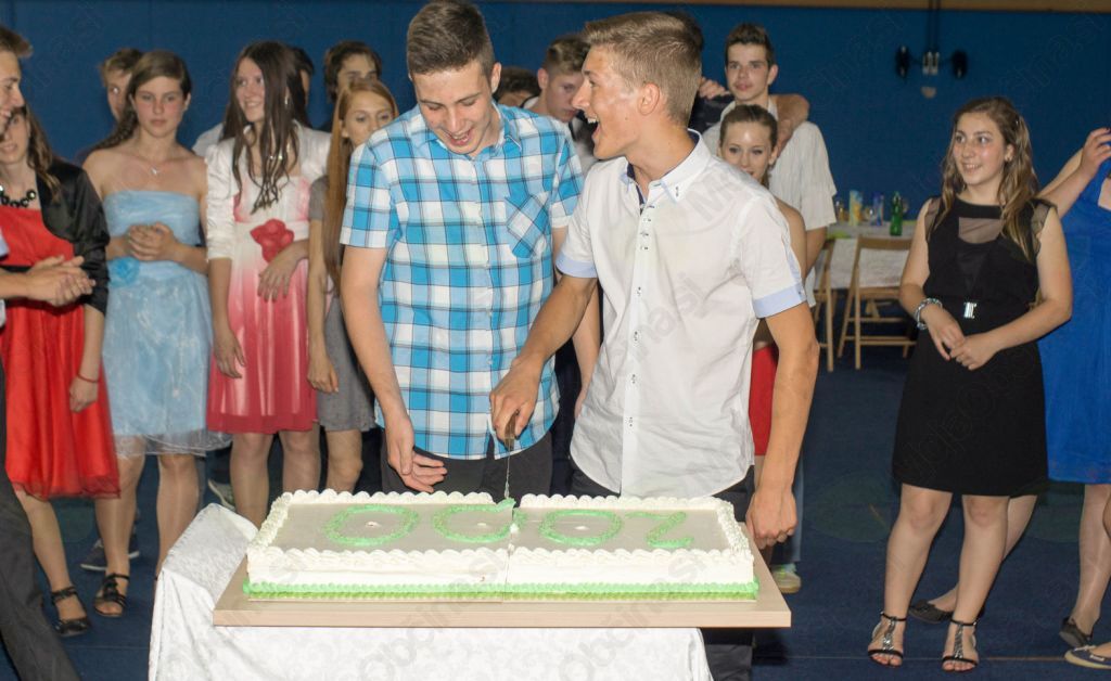Sledil je pozdravni govor župana, ki je mladini položil na srce, da se je njihova pot šele dobro začel in naj pri vzponu k odraslosti tudi uživajo. Skupaj z razredničarkama je podelil priznanja najboljšim učencem in učenkam, pri čemer je z najdaljšim opisom dobrih del in dosežkov Rebeka Prosen prekosila vse in kot ostali učenci prejela srečno knjigo, polno dobrih nasvetov in izrekov. Potem pa sta besedo dobili razredničarki; Katja Premrl je bila gospodarica 9. a, Sanja Štempihar pa je krotila 9. b. Z veliko podobno zvenečimi besedami sta poskrbeli za zabavo ponosnih staršev, a nobena od njiju na koncu zahvalnega in motivacijskega govora ni mogla skriti svoje ganjenosti, navezanosti na to "gangstersko bando". Učiteljici in razredničarki sta dobili prav posebno darilo, ki so ga učenci prej več dni zapored sestavljali, tkali in vezali v Črnem Vrhu pri Koširjevih – hvala vama, Marko in Simona, za veliko angažiranosti pri izdelavi lesenih skodelic in pisanih cofov, iz katerih so učenci naredili verigo s svojimi imeni. Pri atraktivni akrobatski plesni točki plesne šole Bolero je blestela Gaja Malovrh, nato pa je ples ravnatelja z Niko Osredkar odprl plesni večer za starše, ki so ponosno zaplesali z svojimi učenci. Po večerji se je vzdušje sprostilo, glasba je zazibala učence in predvsem učenke, pomemben in predvsem sladek del programa pa je bila velikanska torta, v katero sta ob zabavnem povezovanju Katje iz Bolera skupaj zarezala predsednika razredov Matej Bradeško in Jurij Košir.