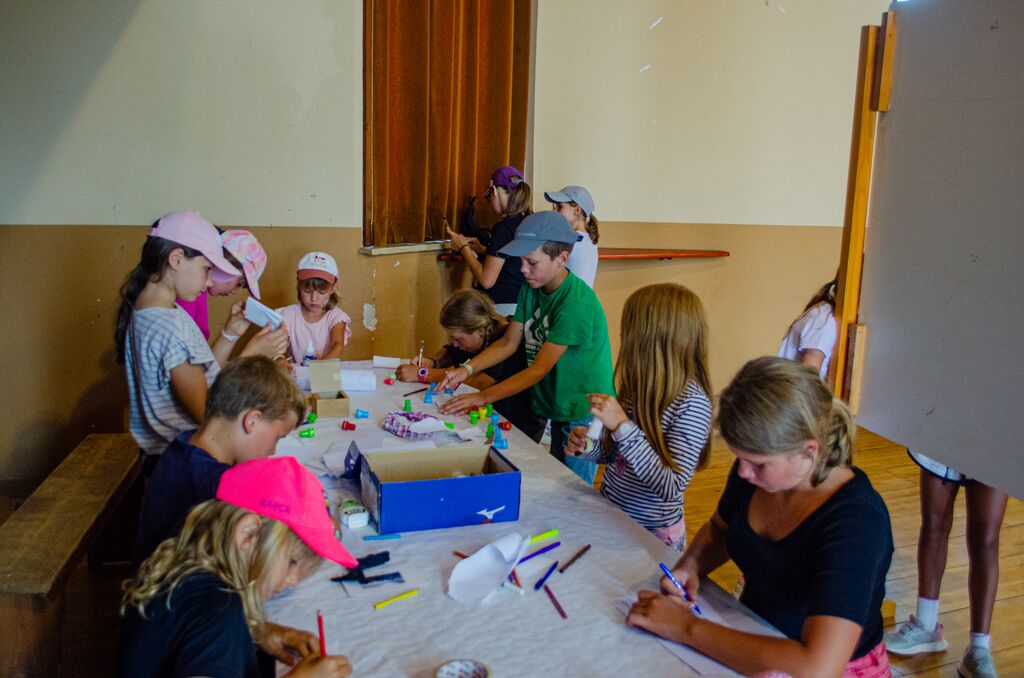 cela vas. Otroci in animatorji so veliko časa preživeli na prostem, v farovžu,