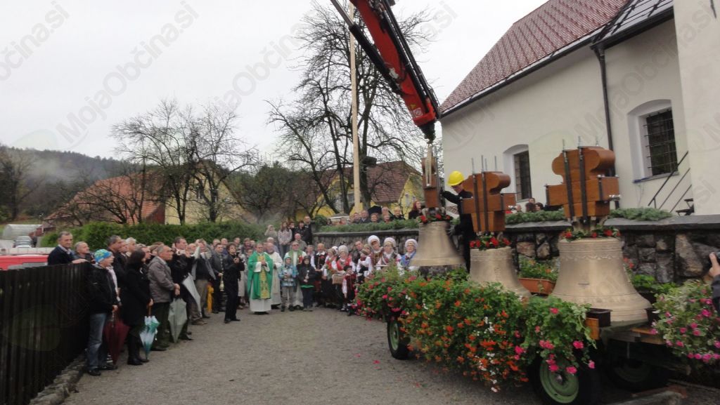 Skupina domačinov se je že septembra udeležila ulivanja novega bronastega zvona, ki je potekalo v livarni Perner, v kraju Passau v Nemčiji. V tej so zaradi novonastale neugodne gospodarske situacije, kljub večstoletni tradiciji, ulili enega od zadnjih zvonov. Ta je najmanjši izmed treh, težak je 382 kilogramov, uglašen v tonu ais, posvečen pa je sv. Martinu. Napis na njem se glasi: "Sv. Martin, prosi za nas." Največji zvon tehta kar 655 kilogramov, uglašen je v tonu fis in posvečen sv. Florjanu, srednji, bronasti zvon, ki je pred kratkim iz dobrovske cerkve romal na uglasitev v Passau, pa je težak 485 kilogramov, uglašen je v tonu gis in posvečen sv. Frančišku. Zvonovi se tako odlično zvočno ujamejo in ustvarjajo čudovito harmonijo. A tudi starim železnim zvonovom se je našlo novo, uporabno mesto. Najmanjši zvon bo odslej zvonil in razveseljeval ljudi na Madagaskarju, saj odhaja na misijon k misijonarju Janezu Krmelju, drugi bo stal v Podsmreki ob cerkvi, največji pa bo po novem služil kot arhivski artikel na Dobrovi.Priprave na slovesnost so se za pripravljavce in organizatorje začele že zelo zgodaj zjutraj. V delavnici Jožeta Ovna so lepe speskane zvonove na Martinovo nedeljo dopoldne domačini naložili na lepo okrašeni "gumiradel" – voz. Nato pa so jih v muhastem jesenskem vremenu s traktorjem popeljali skozi vasi Razori, Draževnik, Komanija in Podsmreka. Ob spremstvu domačih gasilcev PGD Podsmreka je množica spremljala konvoj, nekateri so se celo prvič sprehodili po novem pločniku. Voz z zvonovi se je na poti skozi vasi ustavil pred vsemi znamenji in kapelicami, kar nekajkrat pa je postal tudi zaradi želja domačinov, ki so se ob novih zvonovih želeli fotografirati. Konvoj je opravil pot vse do konca vasi Podsmreke, nato pa se je vrnil proti cerkvi sv. Martina, kjer je z zvonika plapolala slovenska zastava, pred cerkvijo pa je stal mogočen mlaj. Mojstri so v zvoniku pripravljali še zadnje podrobnosti za namestitev novih zvonov, ki so se tu ustavili in počakali na slovesen blagoslov. Tudi cerkev in njena okolica sta bili urejeni priložnosti primerno. Oltarno mizo so krasile nove sveče ter novi čipkasti prti z vezenimi škrniceljni, ki jih je spretno in z dobro voljo zvezla Vera Rihar.