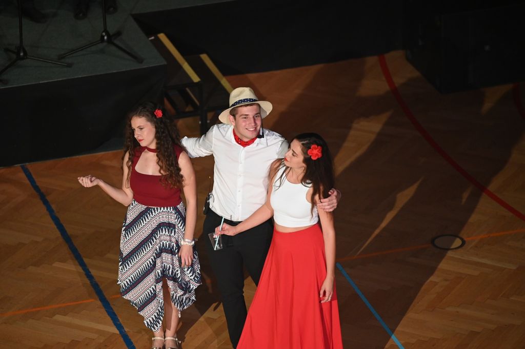 Še preden so se gledalci dobro zavedali, je letalo že poletelo, najprej v Italijo na skrivnosti italijanske kuhinje in zgodovine ter naprej v ulice romantičnega Pariza, v čase francoskega šansona in plesa. Irski String of Fire, ki jo je za to priložnost priredil Aljaž Sečnik, je ob vodstvu odličnih violinistk Lucije Ane Dragaš in Tine Blaznik na noge spravil prve gledalce. Hiter skok v Španijo in potem še v Afriko je prinesel prvinske afriške ritme, ki so jih zapeli in odplesali učenci in učitelji v Združenem zboru OŠ Dobrova in OŠ Polhov Gradec. S pravo pisano predstavo so Svetlice ozaljšale brazilsko Mas que nado ter z odličnim petjem prinesle južnoameriške ritme, ki so jih s plesno-igralskim vložkom nadaljevali člani skupine Teatro. Skupaj z big band zasedbo Godbe so v kubanskih Havana in Cuban Pete dodobra razgreli občinstvo. Jazz ritmi legendarne glasbe Glenna Millerja v ZDA so nas vrnili v čas med obema vojnama ter pripravili teren za prehod Pacifika. V deželi vzhajajočega sonca so nas pričakali člani skupine Teatro, ki so z igro senčnega gledališča dopolnili čustveno zgodbo japonskega ljudskega napeva. Kitajski Glineni vojščaki so s tolkalskimi vložki odgnali še zadnje pomisleke – za godbo pri glasbi ni ovir! Kako drugače kot klasično izjemno bi lahko opisali Cvetlični valček iz Hrestača, v katerem so godbeniki dokazali, da jim niti klasična glasba ni tuja, še posebej ob pravi paši za oči, ki so jo prikazale baletke Nižje baletne šole KGBL. Madžarski Csardas ni šel brez violine in Neli Božič, še ena klasična Na lepi modri Donavi pa ne brez dveh izvrstnih parov iz Plesnih šol Salsero in Bolero. Ob koncu sta voditelja večera, Jure Sešek in Grega Čuden vendarle ujela godbeno letalo in skupaj z godbeniki pristala na Letališču Emila Adamiča na Dobrovi, najprej z venčkom Avsenikovih ter nato s slavnostnim skupnim zaključkom vseh nastopajočih na koncertu s pesmijo Moja Slovenija.