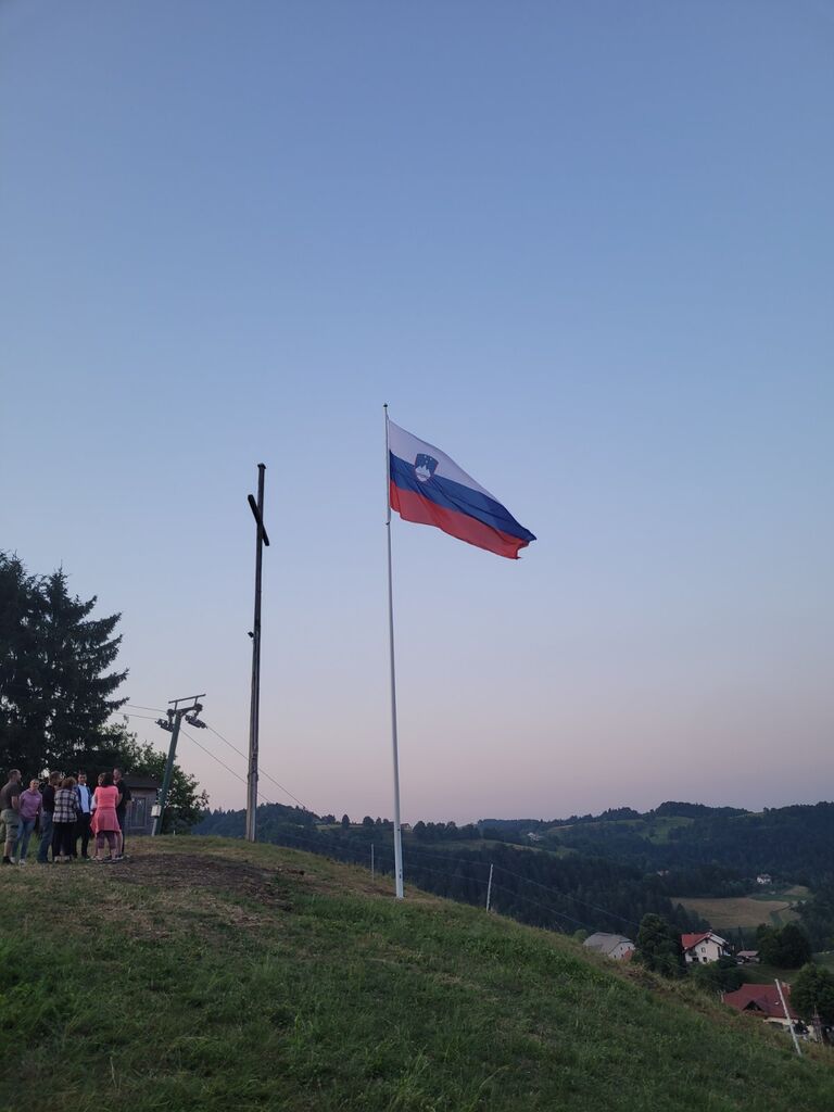slovensko zastavo pri cerkvi postavili 23. junija 2021 ob 30. obletnici